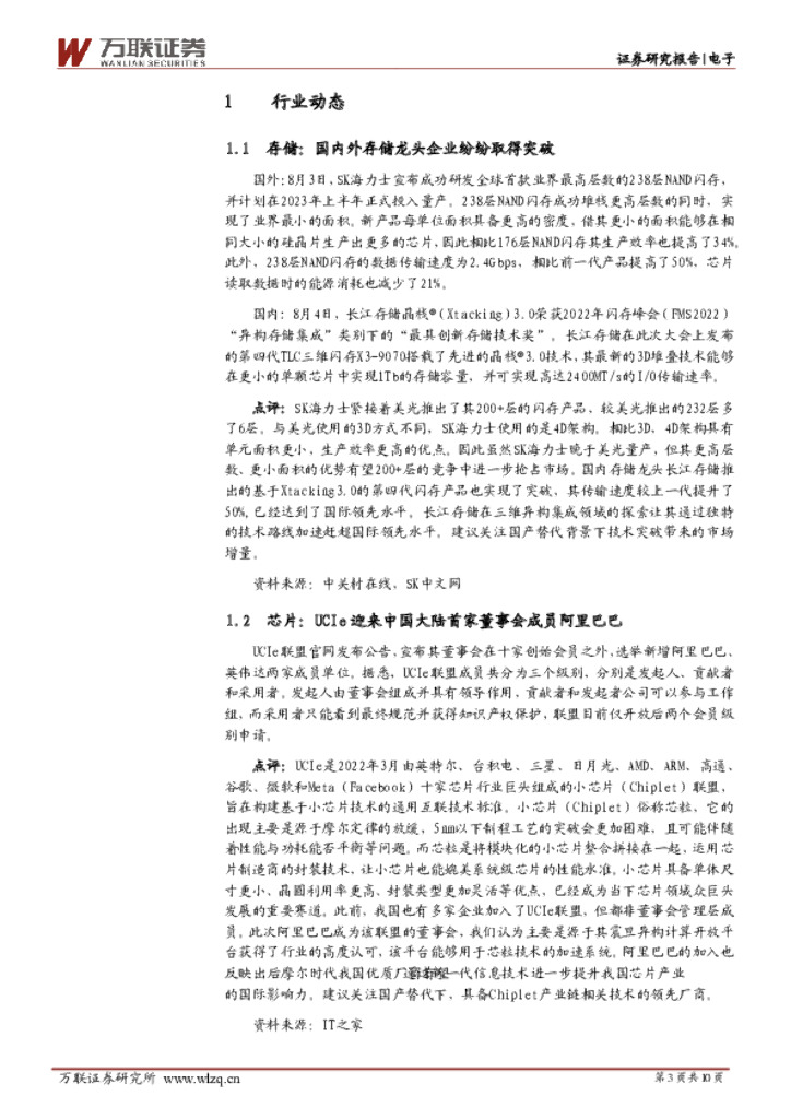 万联证券:电子行业周观点:存储领域多家厂商实现突破,阿里巴巴成为UCIe首家中国大陆董事会成员.pdf