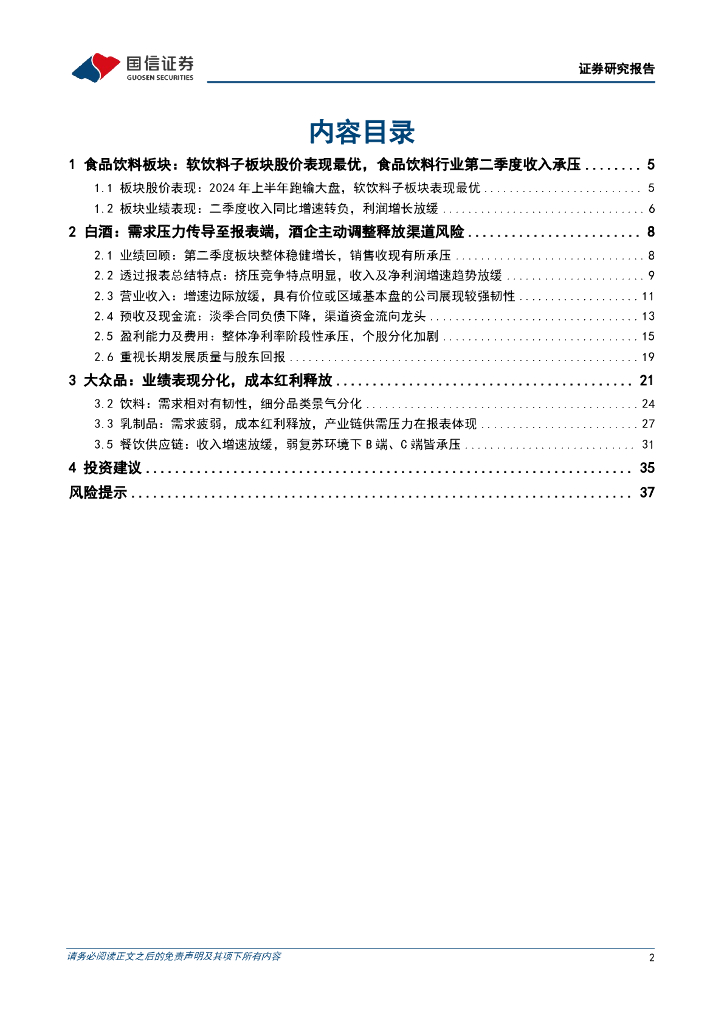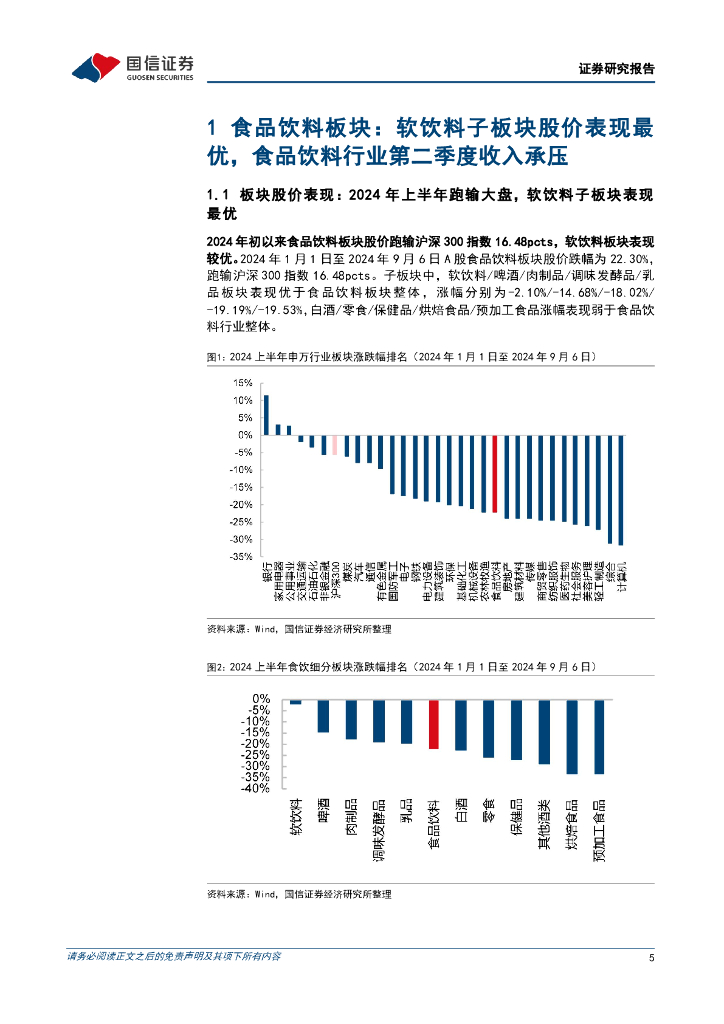 国信证券:食品饮料行业2024年半年度业绩总结:第二季度需求压力增大,利润端表现优于收入端.pdf