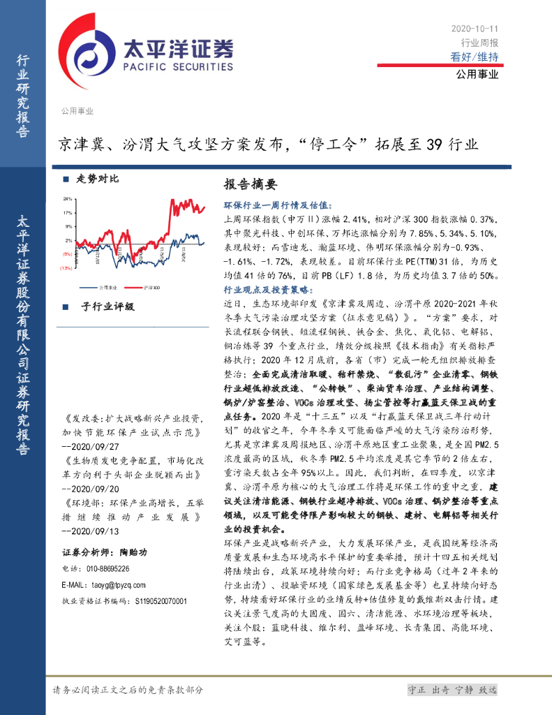 太平洋证券:公用事业行业周报:京津冀、汾渭大气攻坚方案发布,“停工令”拓展至39行业.pdf