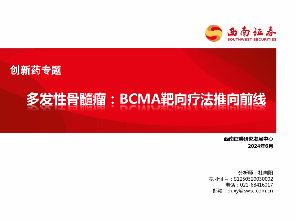 西南证券:创新药专题:多发性骨髓瘤:BCMA靶向疗法推向前线.pdf