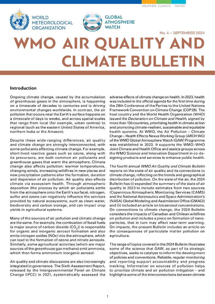 世界气象组织:2024年世界气象组织空气质量与气候公报(英文版).pdf