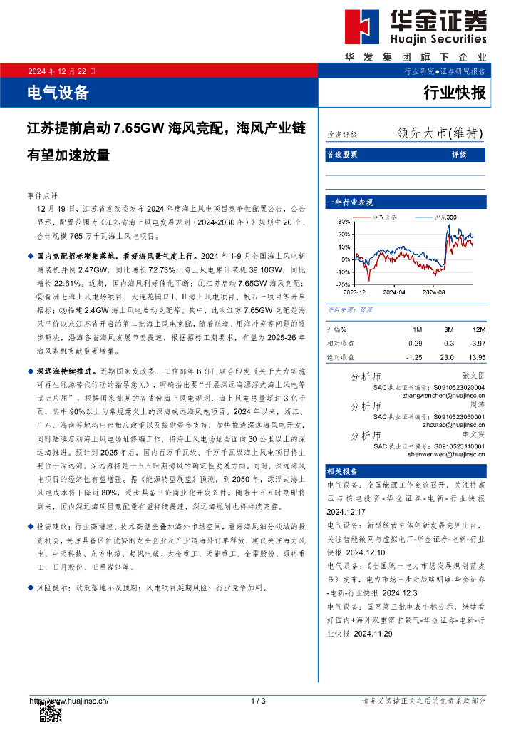 华金证券:电气设备:江苏提前启动7.65GW海风竞配,海风产业链有望加速放量.pdf