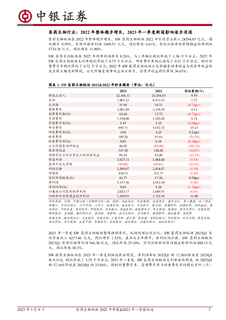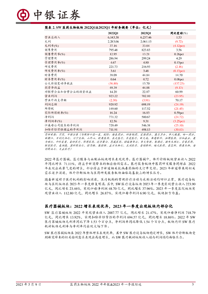 中银证券:医药生物板块2022年年报&2023年一季报综述:后疫情时代部分细分板块存在业绩修复机会,整体板块增长与估值扩张需要新的增长动力.pdf