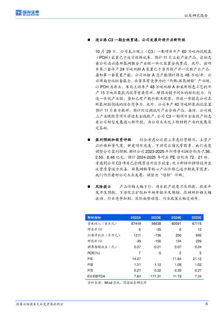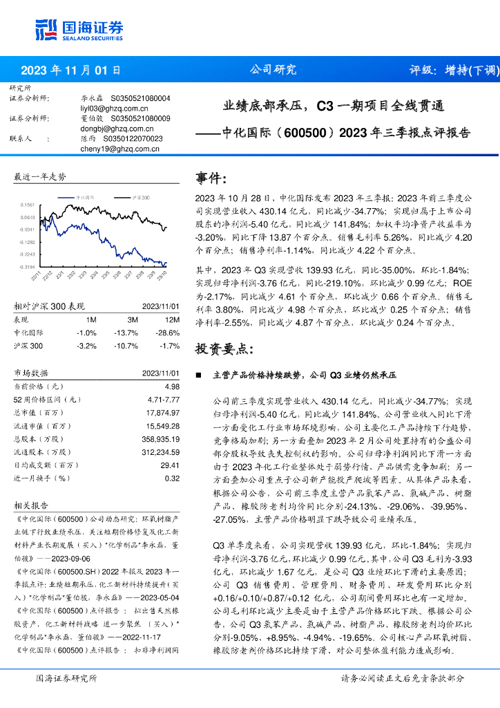 国海证券:中化国际(600500)-2023年三季报点评报告:业绩底部承压,C3一期项目全线贯通.pdf