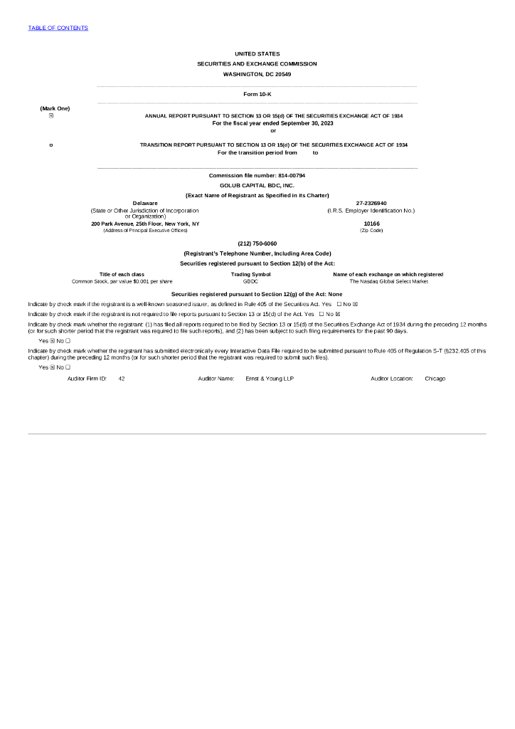Golub Capital BDC Inc(GBDC)2023财年年度报告(英文版).pdf