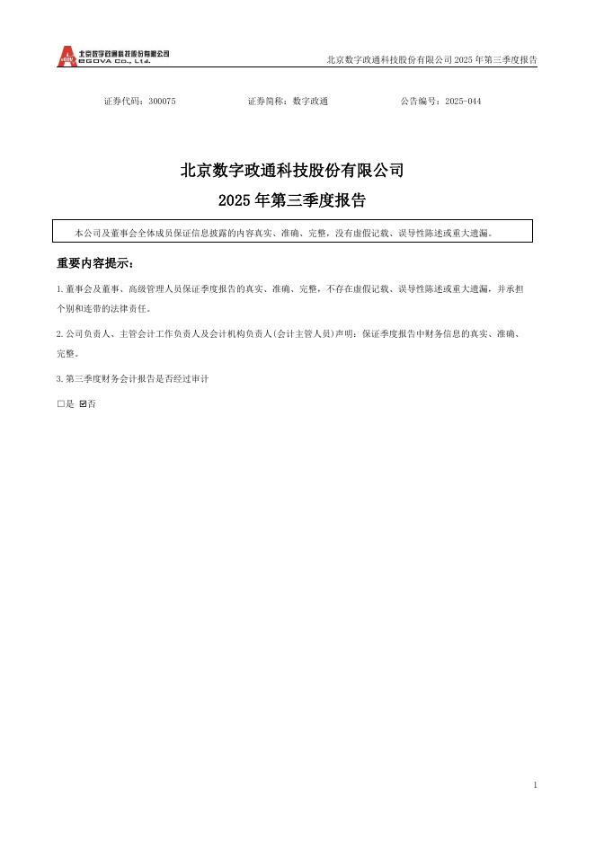 300075-数字政通:2025年三季度报告.pdf