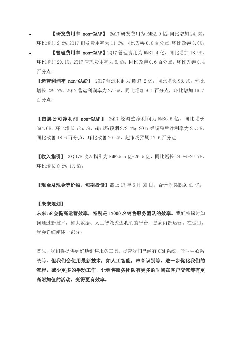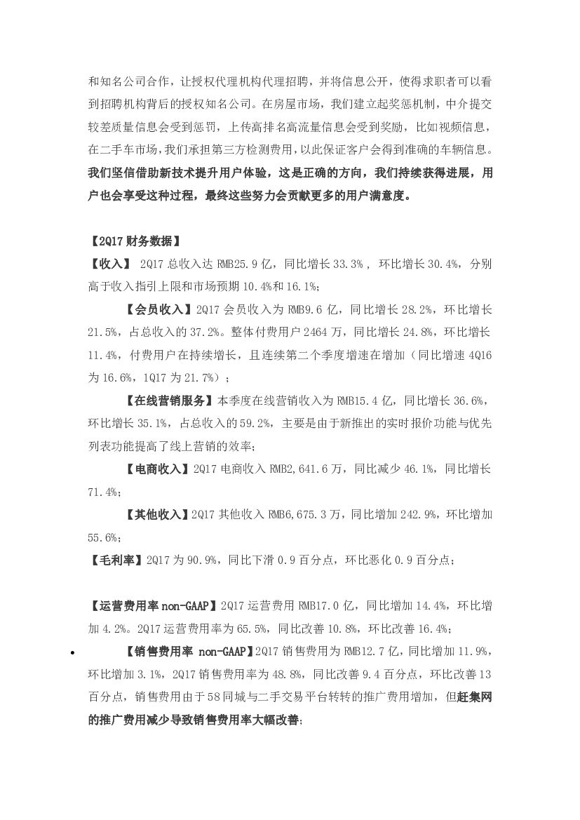 天风证券:58同城2Q17:收入和利润分别同比增长33.3%和394.6%,净利润超市场预期272.7%,费用率改善推动净利润大幅超预期.pdf