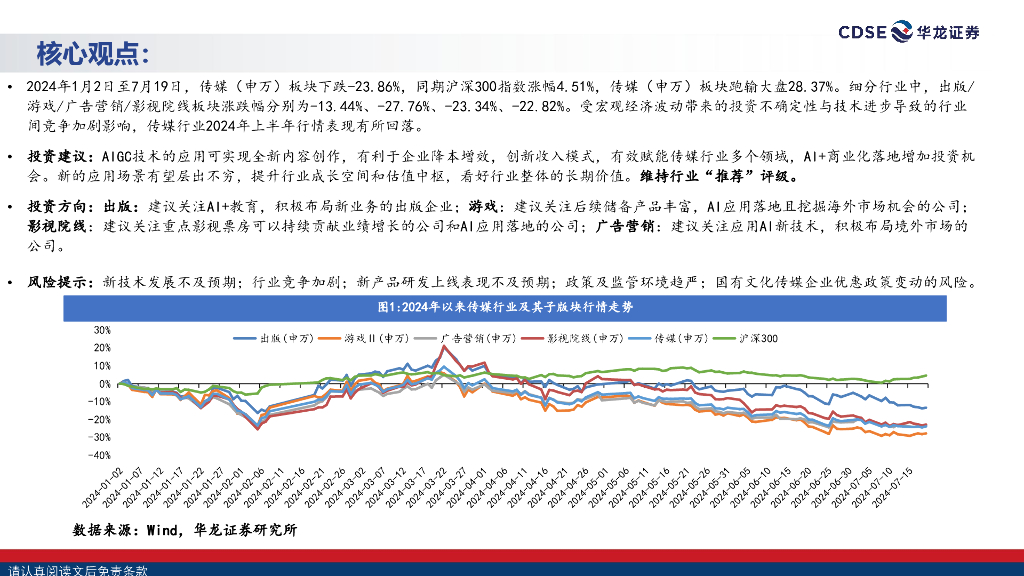 华龙证券:传媒行业2024年度中期策略报告:AIGC赋能,带动传媒迎来增长新曲线.pdf