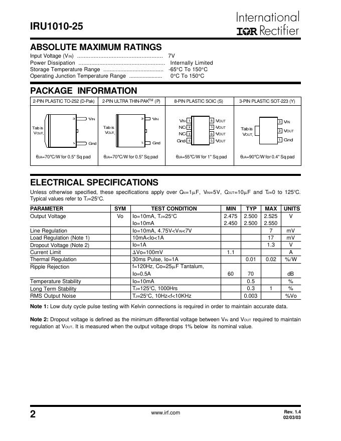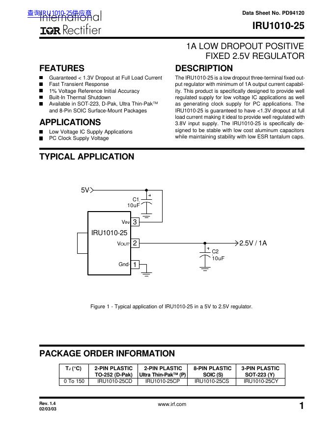 lnternational IOR Rectifier IRU1010-25 数据手册.pdf