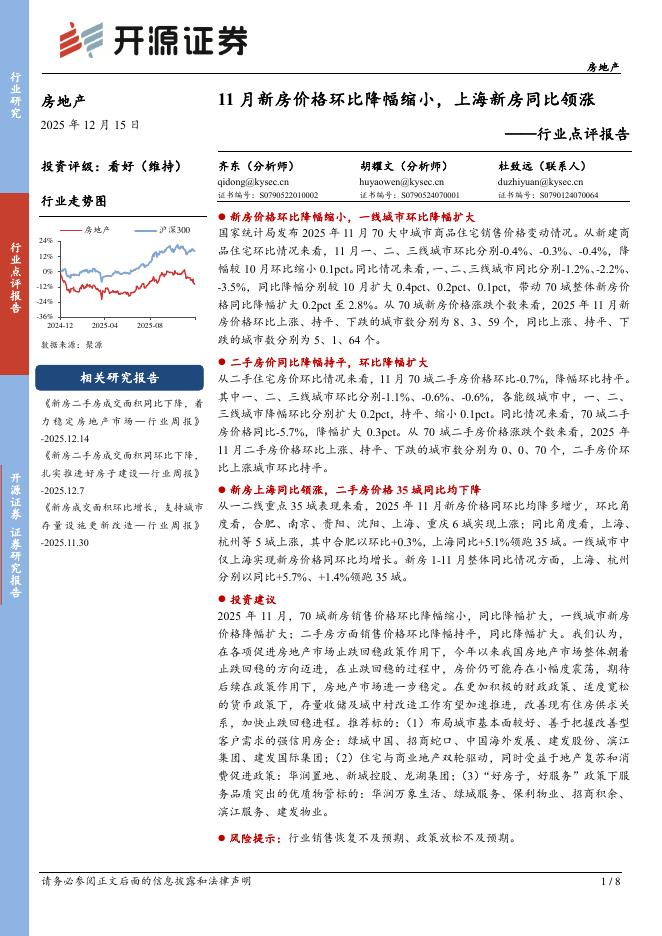 开源证券:房地产行业点评报告:11月新房价格环比降幅缩小,上海新房同比领涨.pdf