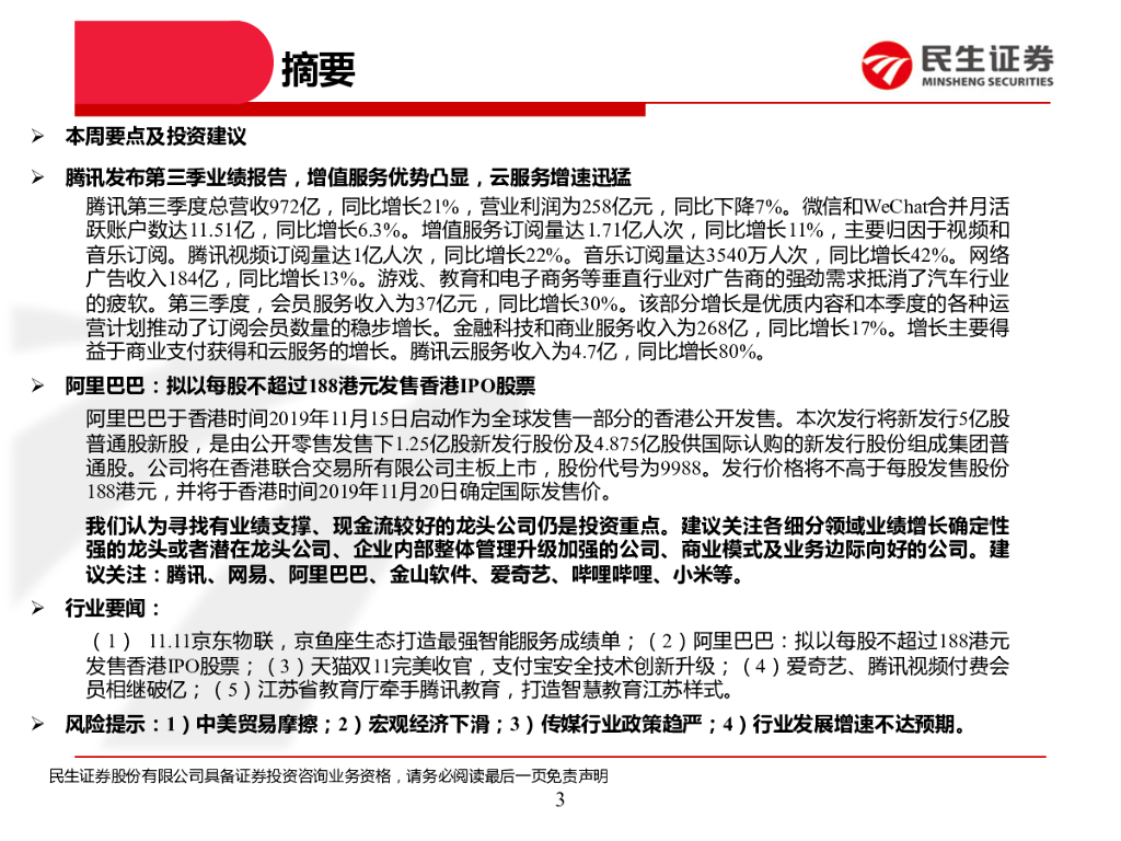 民生证券:传媒互联网行业海外周报:腾讯云服务增速迅猛;阿里巴巴拟以每股不超过188港元发售香港IPO股票.pdf