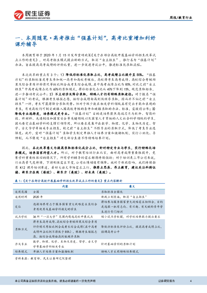 民生证券:教育行业周报:高考招生新政发布,利好课外培训,重点关注“大语文”.pdf