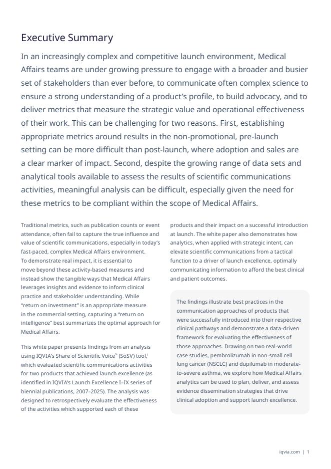 IQVIA艾昆纬:2025年衡量科学传播对推动卓越发射的影响:医疗事务的数据驱动框架报告(英文版).pdf