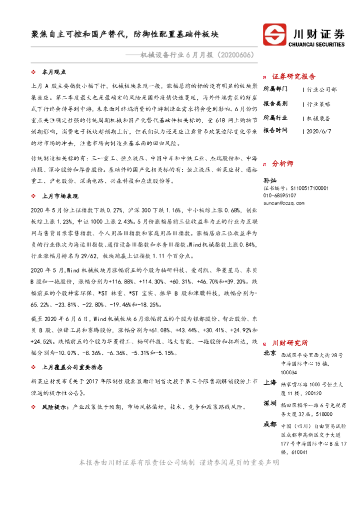 川财证券:机械设备行业6月月报:聚焦自主可控和国产替代,防御性配置基础件板块.pdf