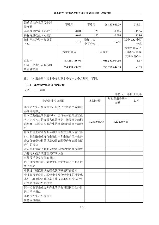 603880-南卫股份:南卫股份2025年第三季度报告.pdf