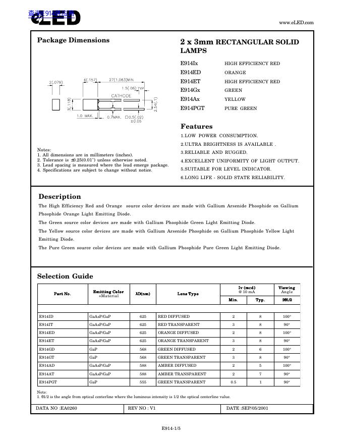 eLED 2 x 3mm RECTANGULAR SOLID LAMPS 数据手册.pdf