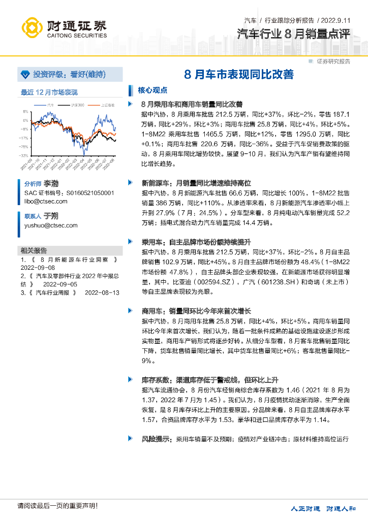 财通证券:汽车行业8月销量点评:8月车市表现同比改善.pdf