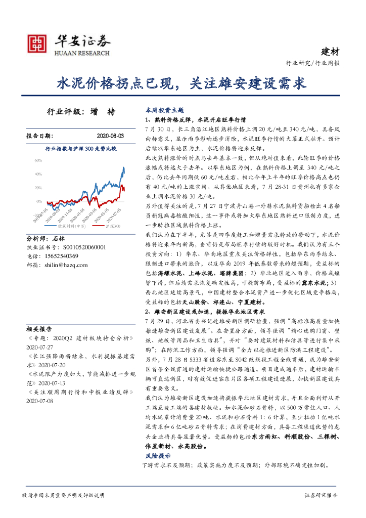 华安证券:建材行业周报:水泥价格拐点已现,关注雄安建设需求.pdf