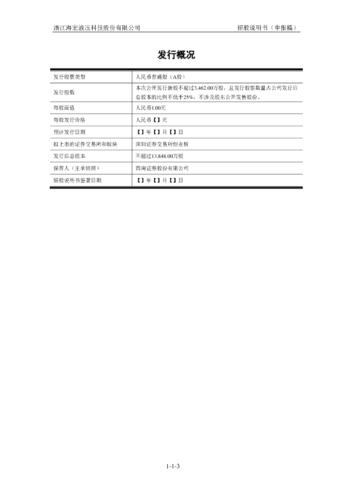 浙江海宏液压科技股份有限公司深交所创业板IPO上市招股说明书.pdf