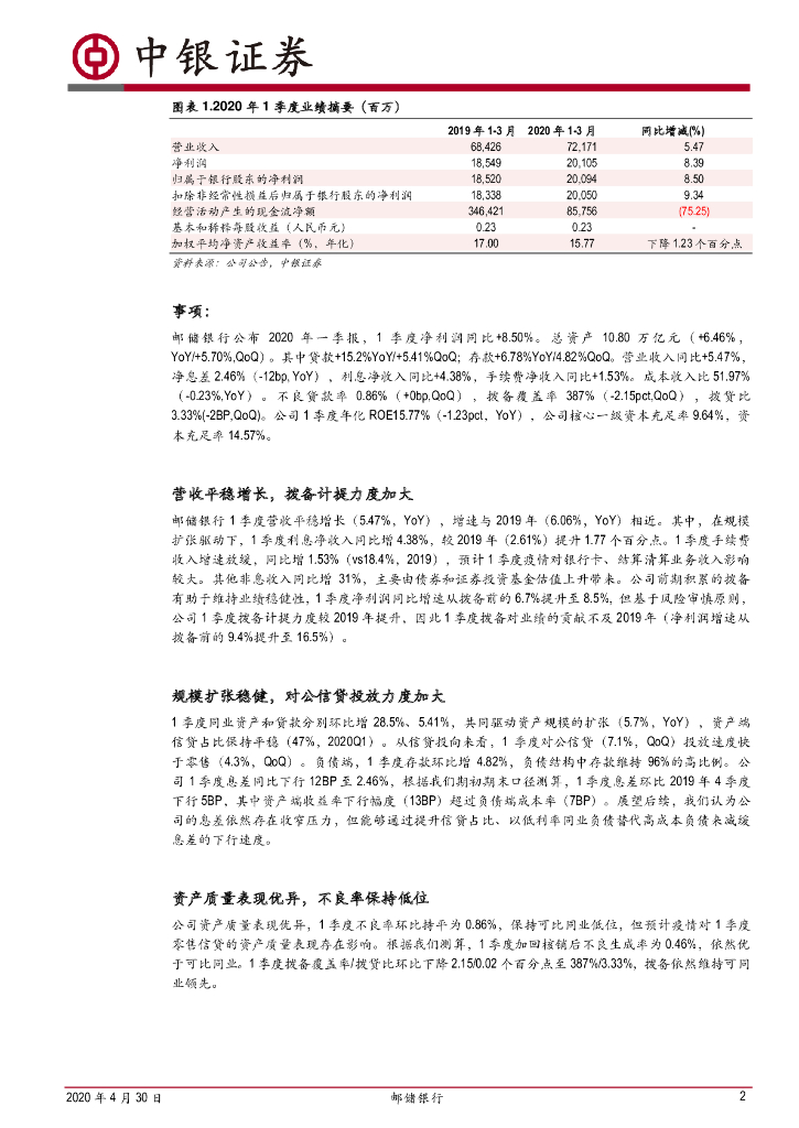 中银证券:邮储银行(601658)-营收增长平稳,资产质量优异.pdf