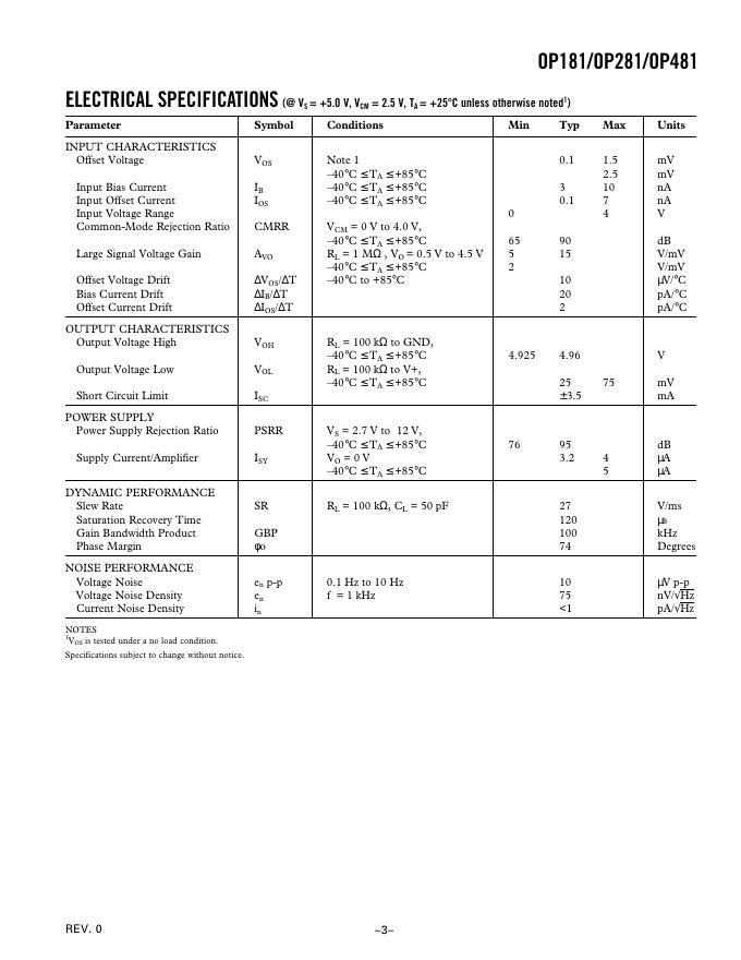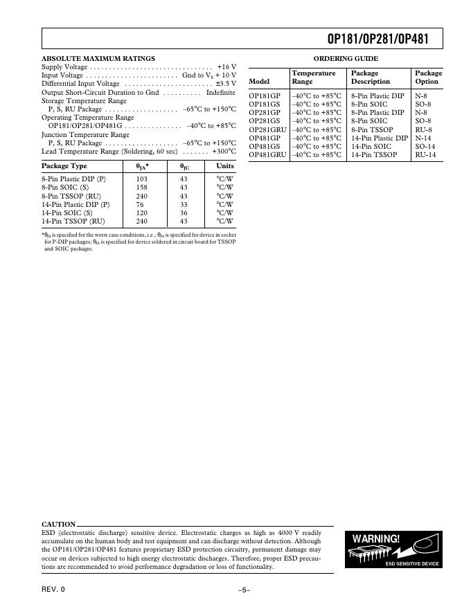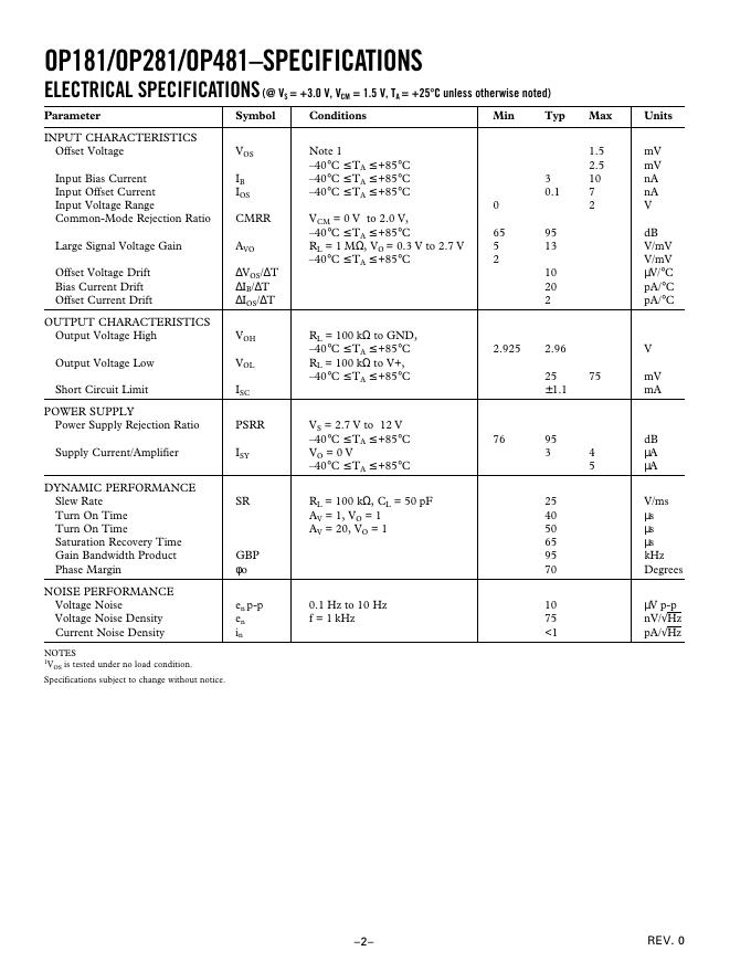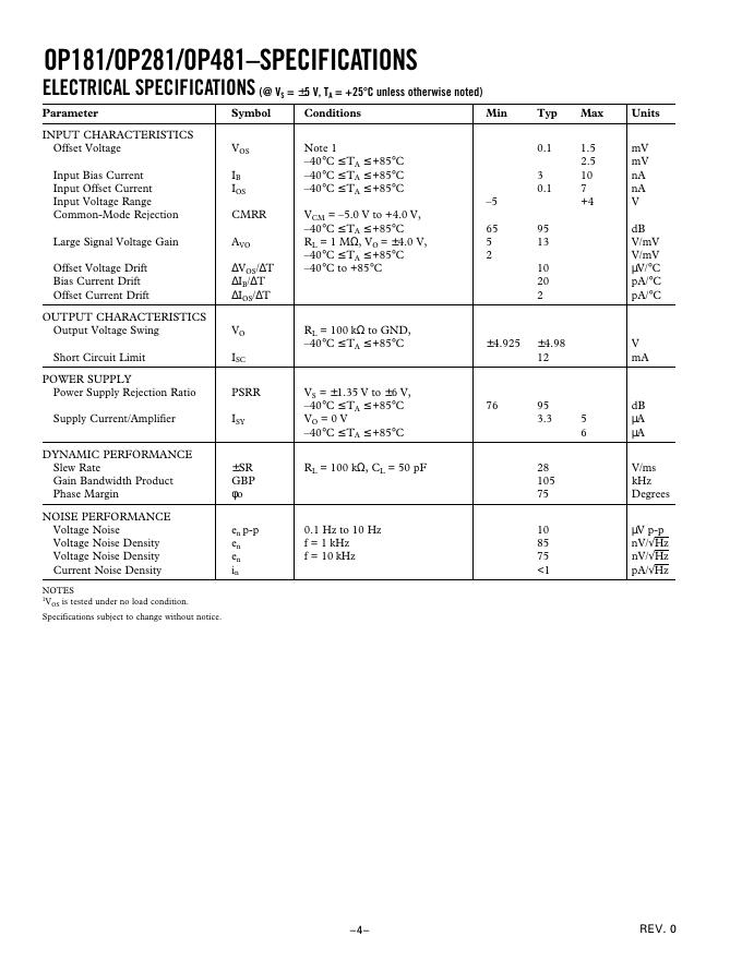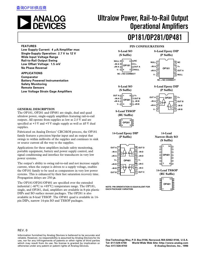 ANALOG DEVICES OP181/OP281/OP481 Ultralow Power, Rail-to-Rail Output Operational Amplifiers 数据手册.pdf
