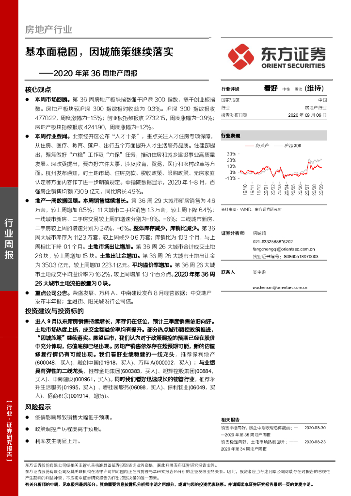 东方证券:2020年第36周地产周报:基本面稳固,因城施策继续落实.pdf