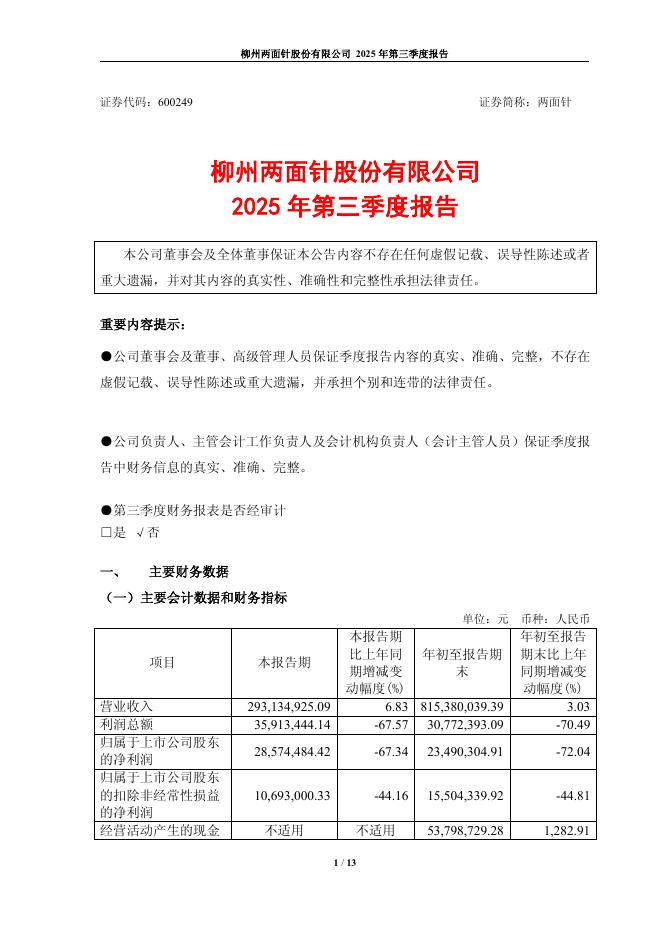 600249-两面针:两面针2025年三季度报告.pdf