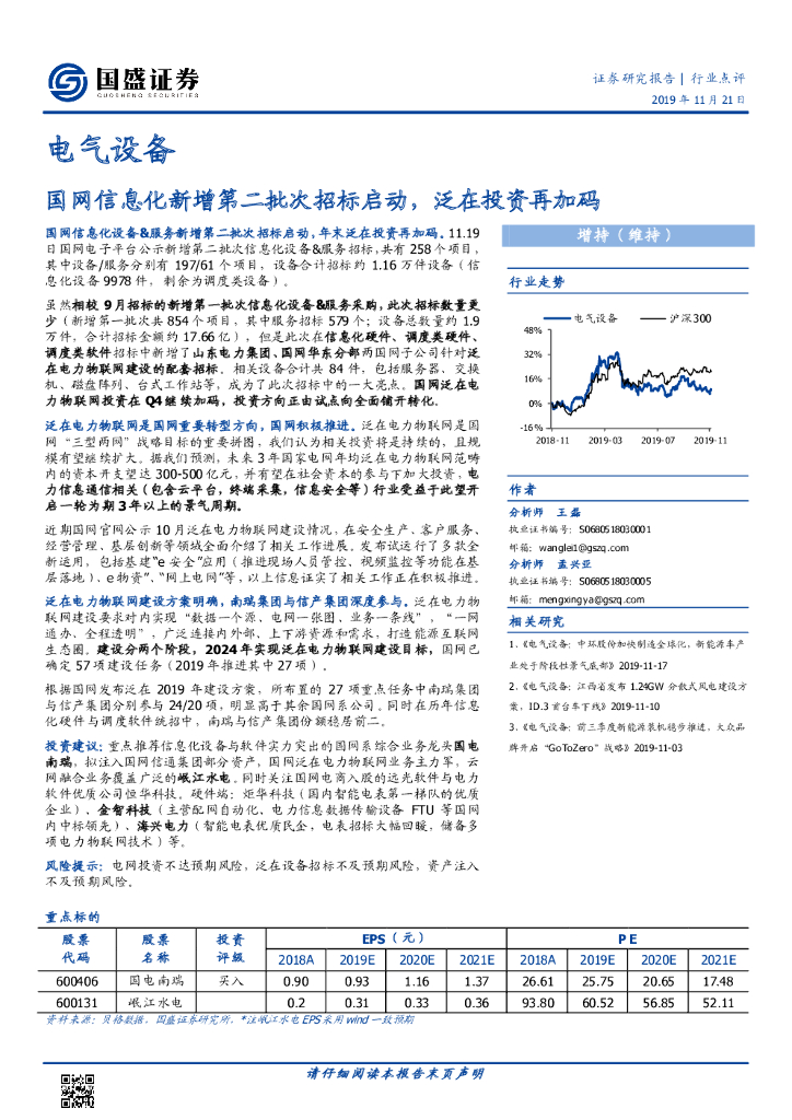 国盛证券:电气设备行业点评:国网信息化新增第二批次招标启动,泛在投资再加码.pdf