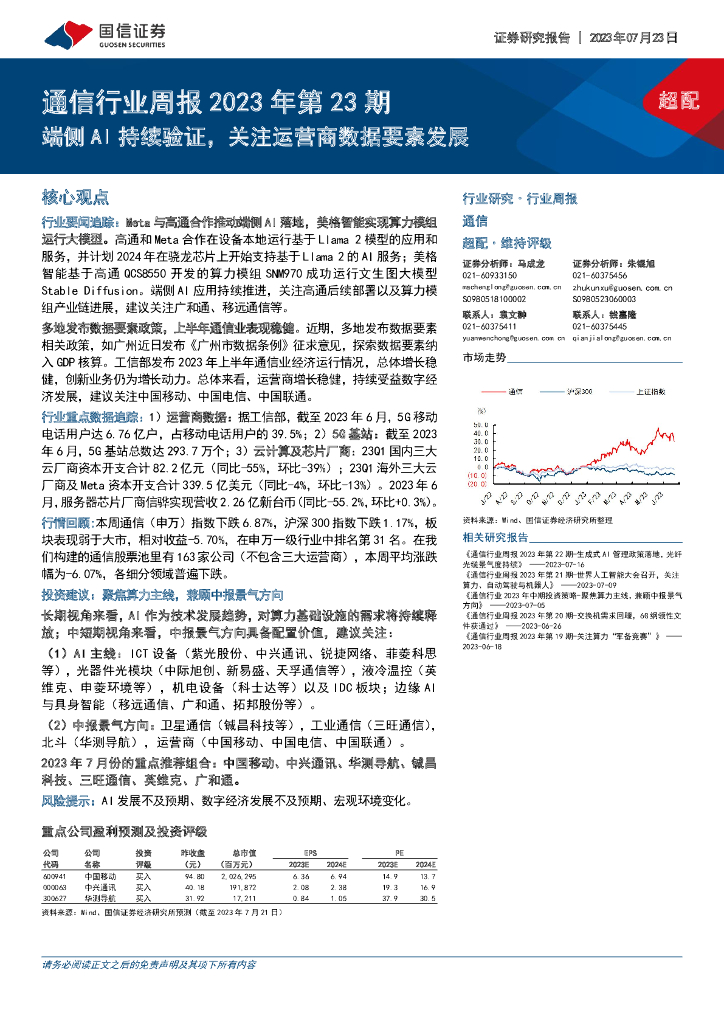 国信证券:通信行业周报2023年第23期:端侧AI持续验证,关注运营商数据要素发展.pdf