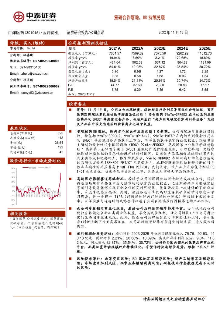 中泰证券:百洋医药(301015)-重磅合作落地,BD持续兑现.pdf