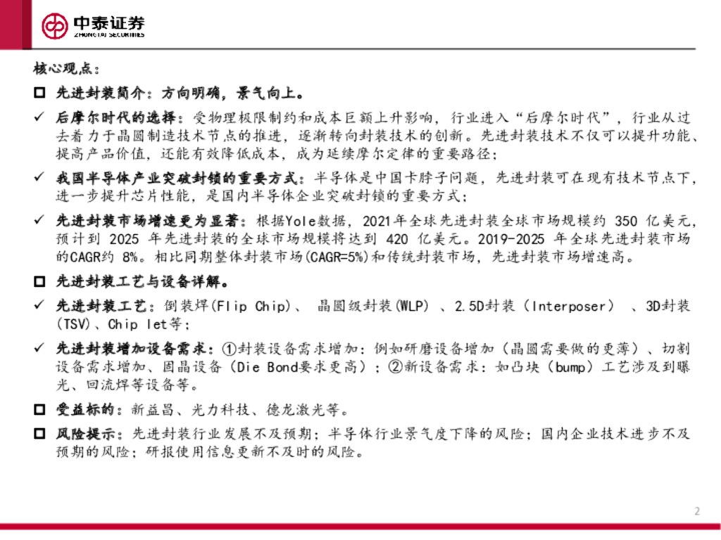 中泰证券:机械:先进封装工艺与设备研究-先进封装大势所趋,国产设备空间广阔.pdf