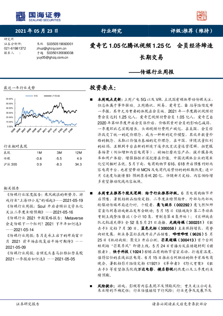 国海证券:传媒行业周报:爱奇艺1.05亿腾讯视频1.25亿 会员经济缔造长期交易.pdf