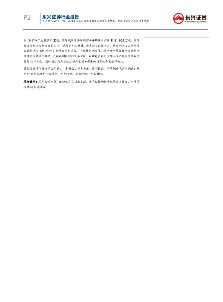 东兴证券:有色金属&钢铁行业:流动性及基本面推动的顺周期交易未结束,把握黄金资产逢低做多机会.pdf