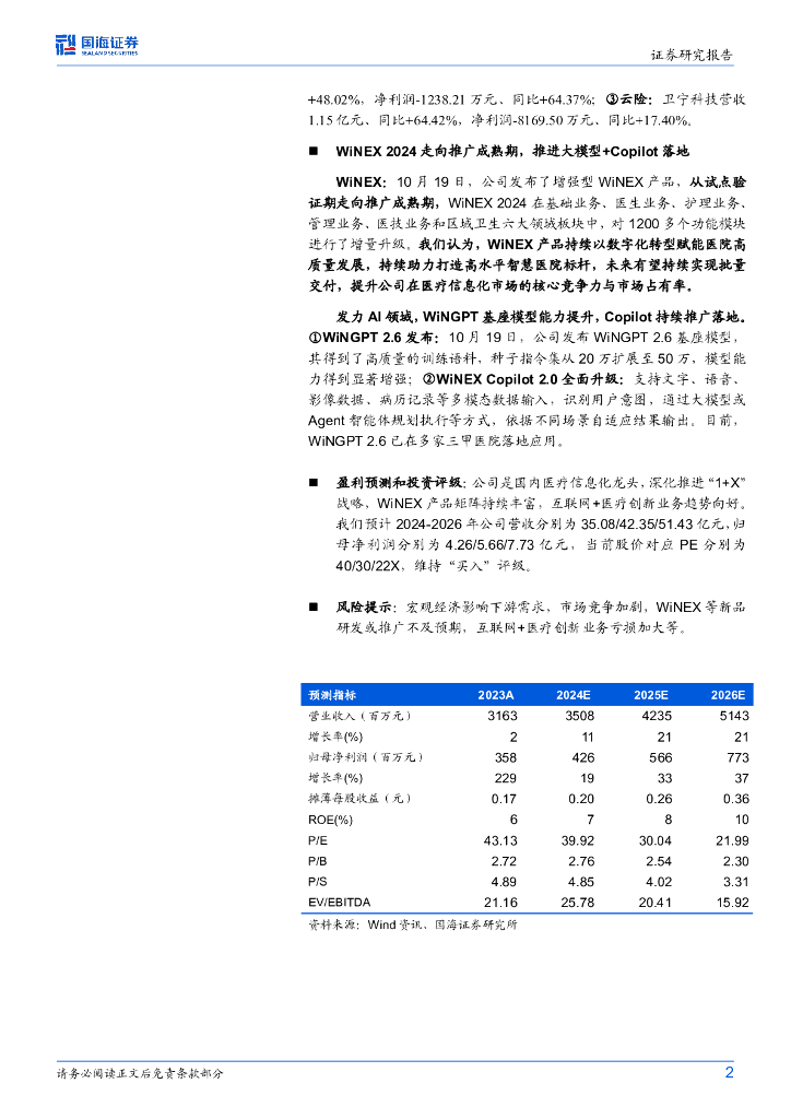 国海证券:卫宁健康(300253)-2024年三季报点评:前三季度互联网医疗营收同比+53%,WiNEX2024走向推广成熟期.pdf