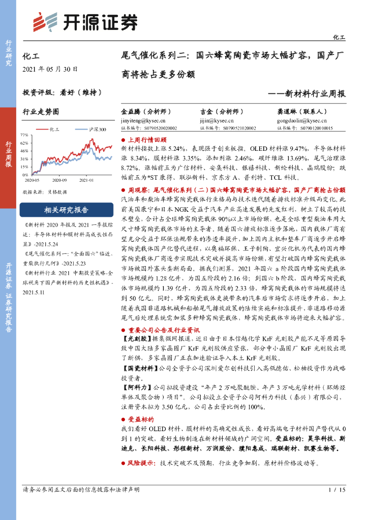开源证券:新材料行业周报:尾气催化系列二:国六蜂窝陶瓷市场大幅扩容,国产厂商将抢占更多份额.pdf