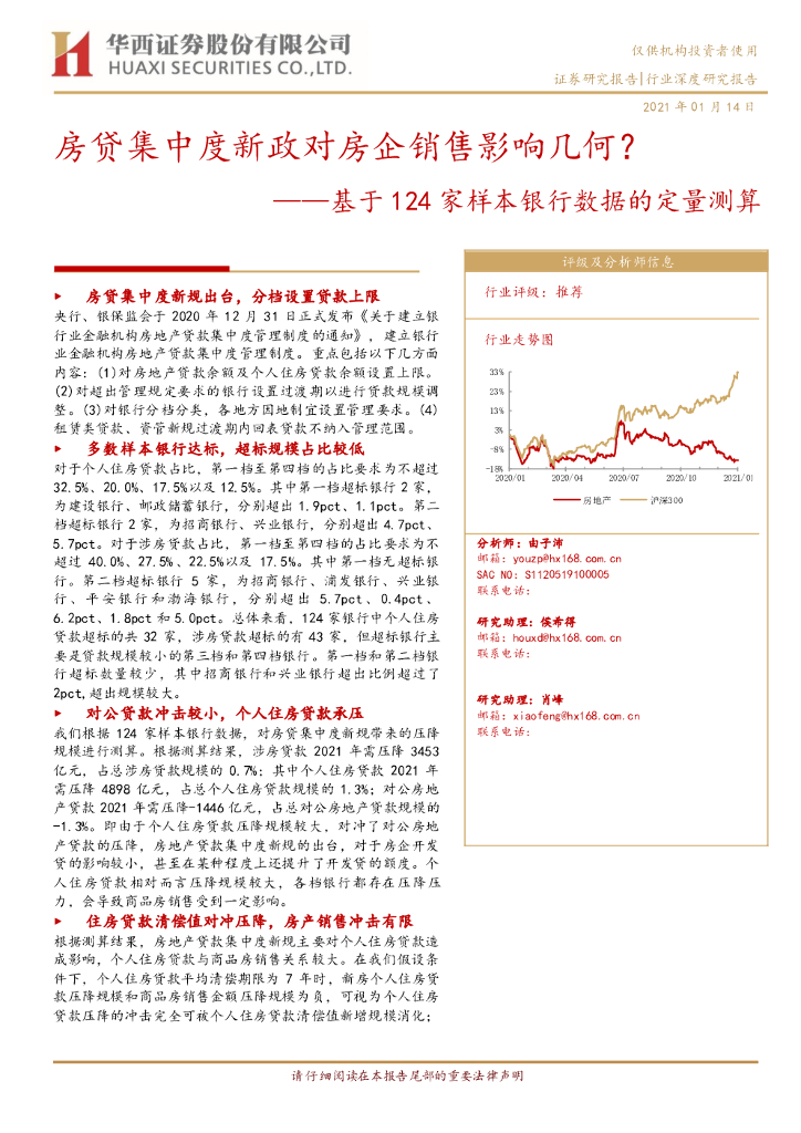 华西证券:房地产:基于124家样本银行数据的定量测算-房贷集中度新政对房企销售影响几何?.pdf