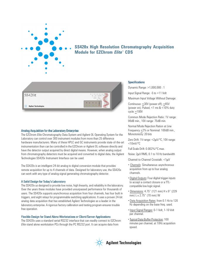 Agilent SS420x High Resolution Chromatography Acquisition Module for EZChrom Elite 数据手册.pdf
