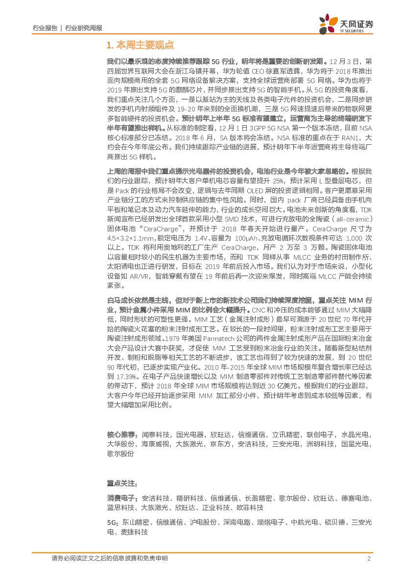 天风证券:电子制造行业研究周报:对于5G持续乐观,关注电池及MIM.pdf