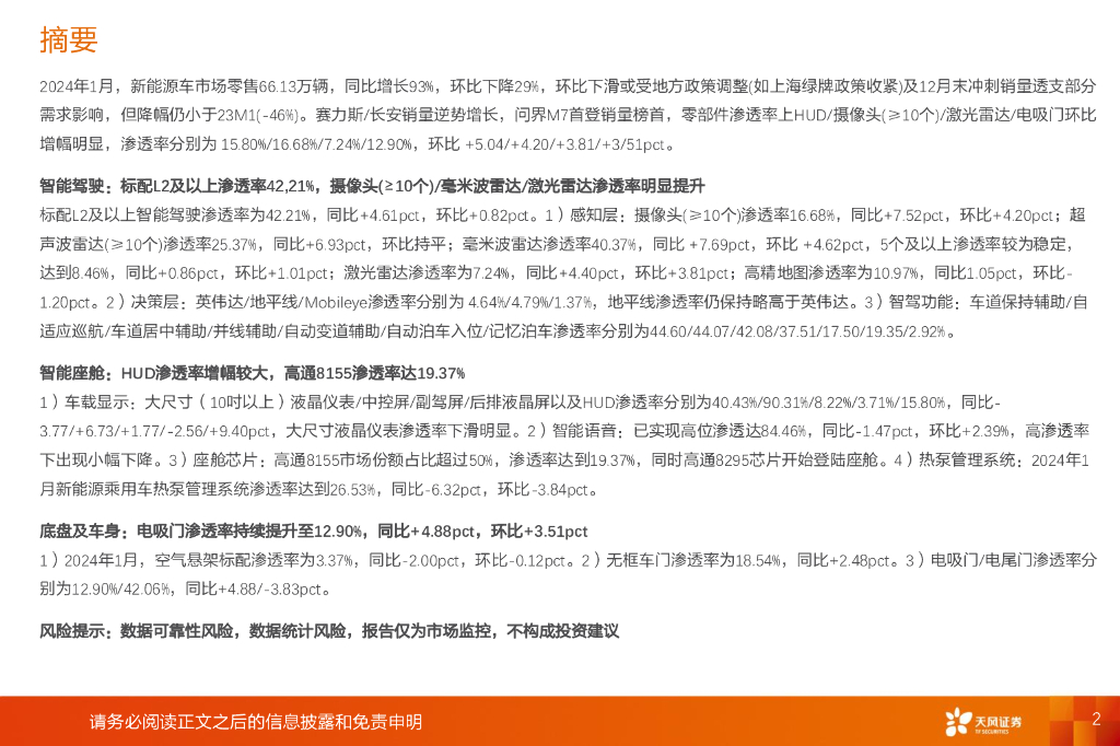天风证券:汽车零部件渗透率数据跟踪——24M1:赛力斯/长安逆势增长,激光雷达/HUD/摄像头/电吸门渗透率提升.pdf