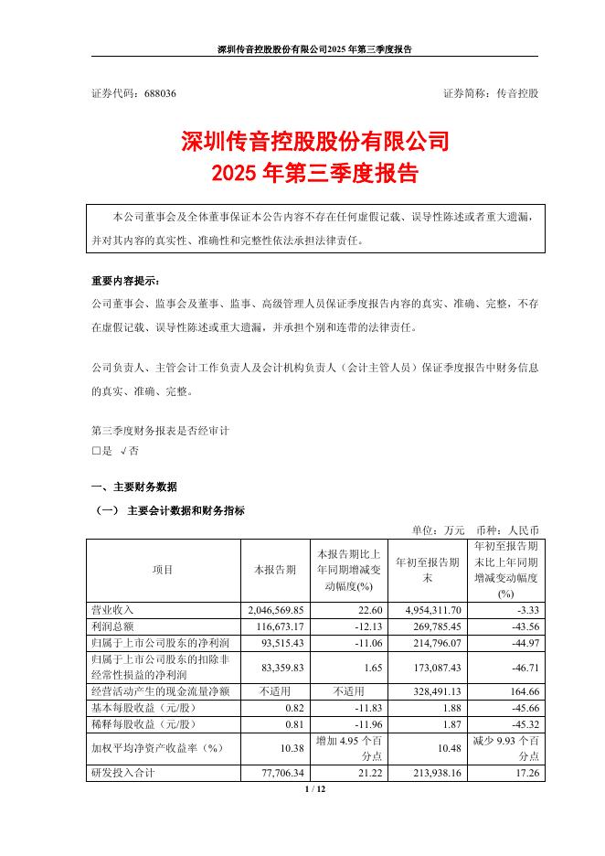 688036-传音控股:传音控股2025年第三季度报告.pdf