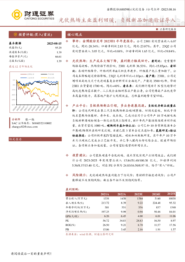 财通证券:金博股份(688598)-光伏热场主业盈利回暖,负极新品加速验证导入.pdf