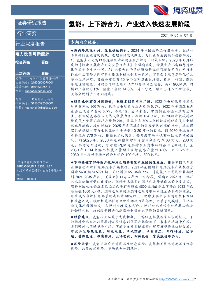 信达证券:电力设备与新能源行业深度报告:氢能:上下游合力,产业进入快速发展通道.pdf