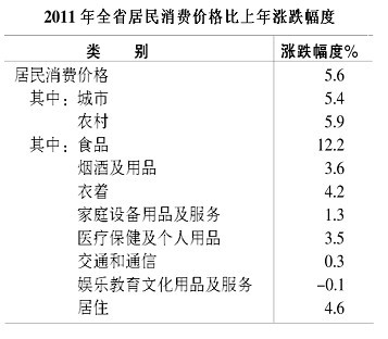 居民消费价格上涨5.6%,涨幅比上年高2.5个百分点;商品零售价格上涨5.3%,比上年高2.1个百分点;工业生产者出厂价格上涨8.3%,工业生产者购进价格上涨10.8%,分别比上年低0.7个和1个百分点;固定资产投资价格上涨8.1%,农业生产资料价格上涨14.3%,分别比上年高2.7个和12.3个百分点。