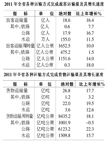 全年旅客运输量18.6亿人,货物运输量26.8亿吨,分别比上年增长16.4%和17.7%;旅客运输周转量1652.5亿人公里,货物运输周转量8435.2亿吨公里,分别增长10%和18.1%。全年港口货物吞吐量3.7亿吨,增长15.1%,其中外贸货物吞吐量277万吨,增长7.4%。全省民航机场旅客吞吐量511.2万人次,比上年增长17.7%,其中合肥机场旅客吞吐量439.9万人次,增长15.2%。