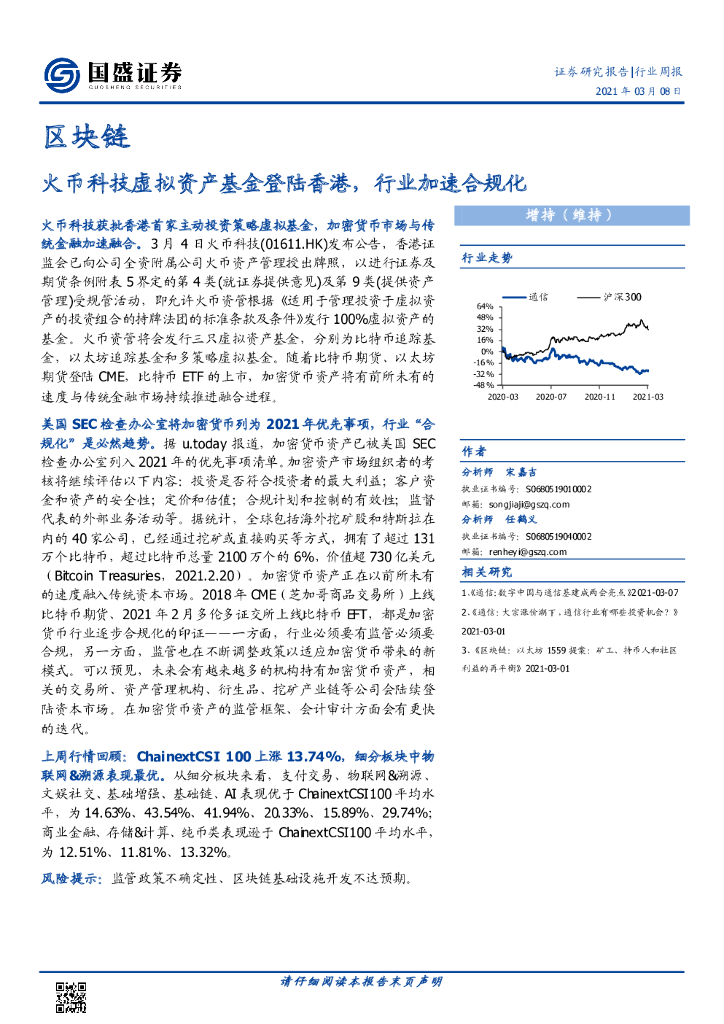 国盛证券:区块链行业周报:火币科技虚拟资产基金登陆香港,行业加速合规化.pdf
