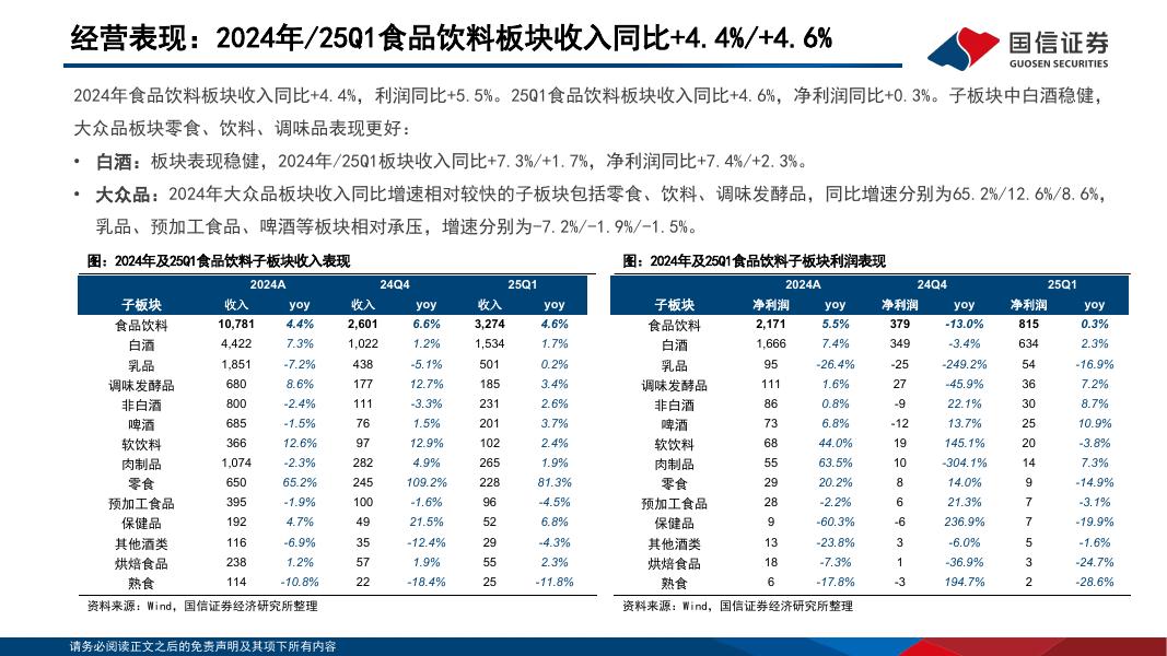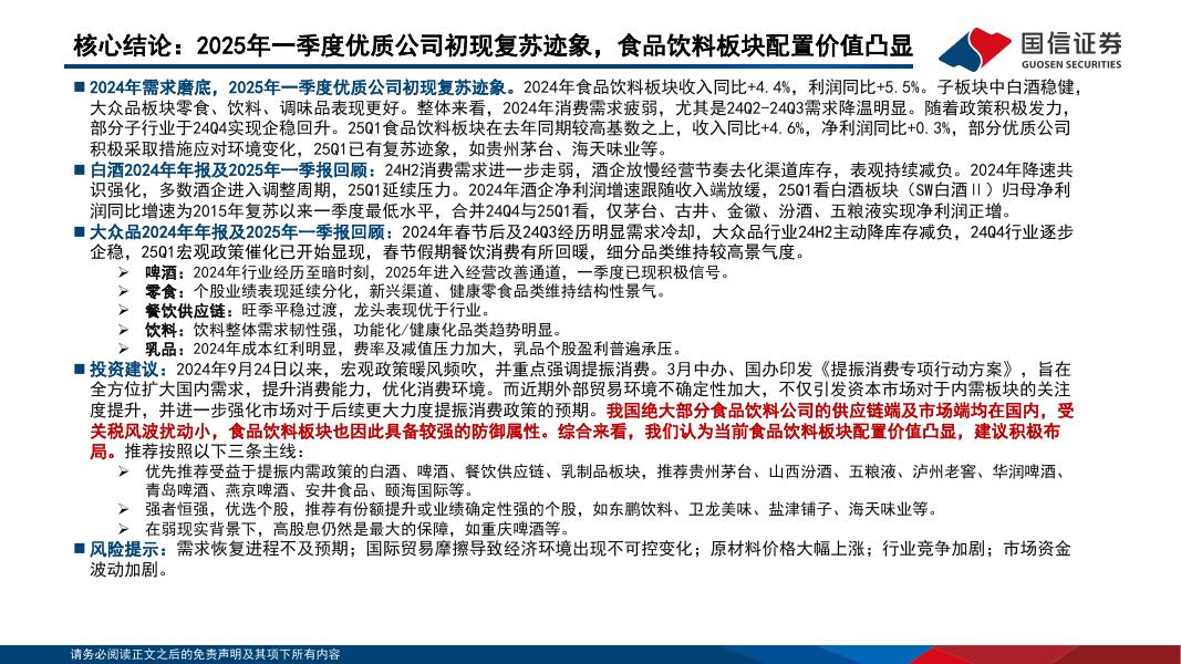 国信证券:食品饮料行业2024年年报及2025年一季报总结:2024年需求磨底,2025年一季度优质公司初现复苏迹象.pdf