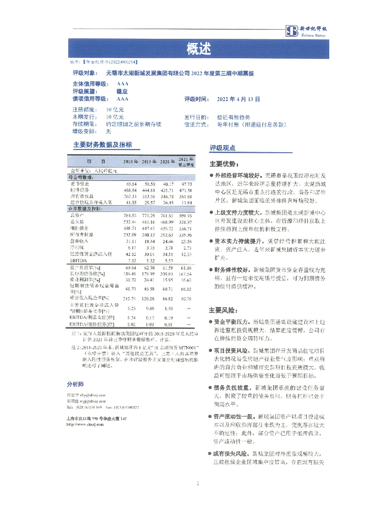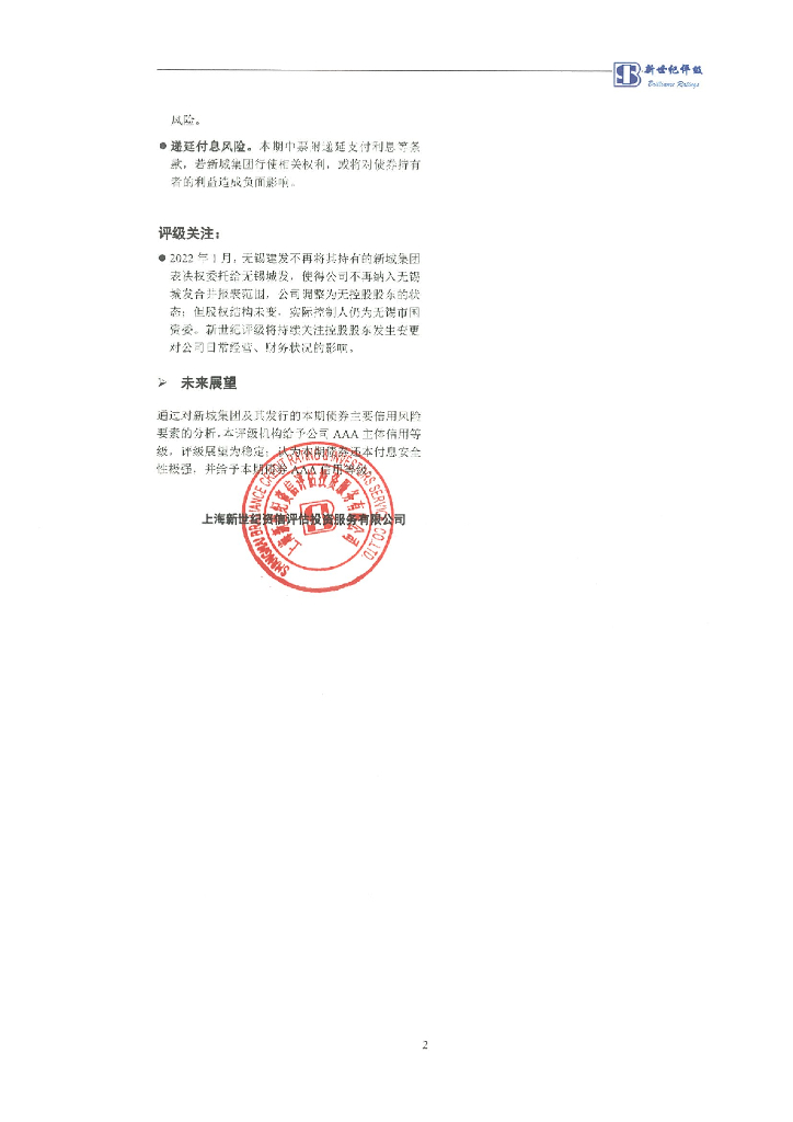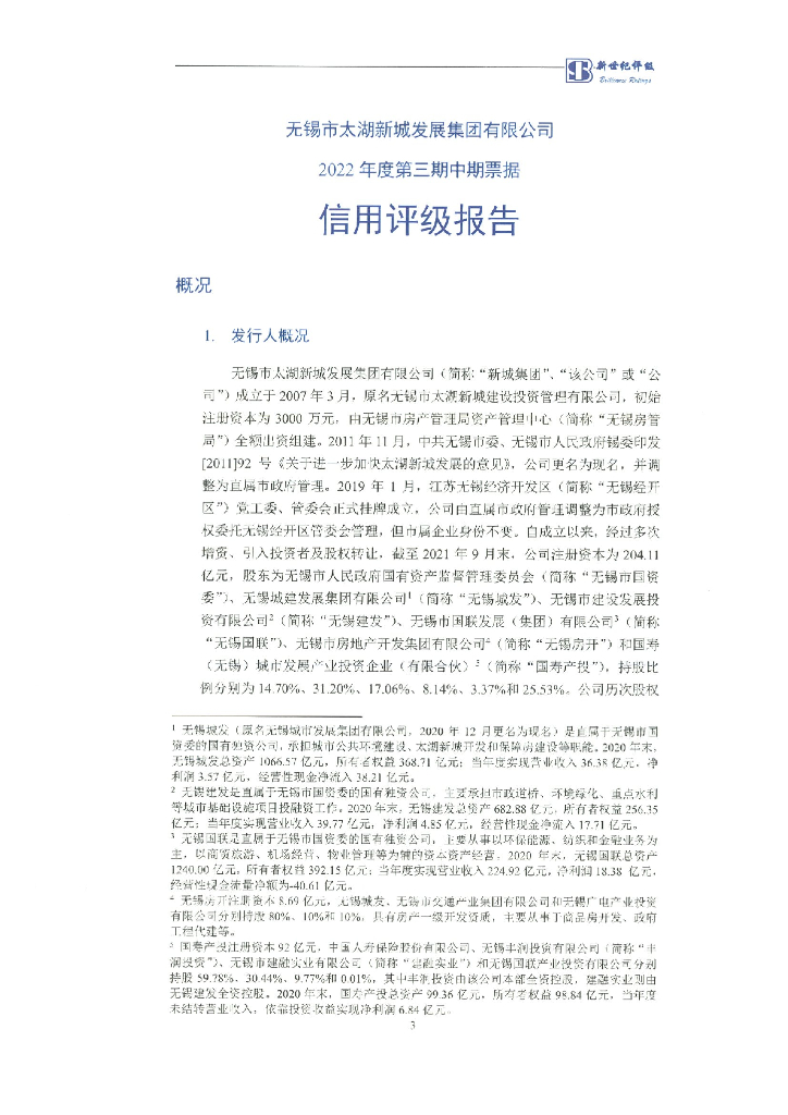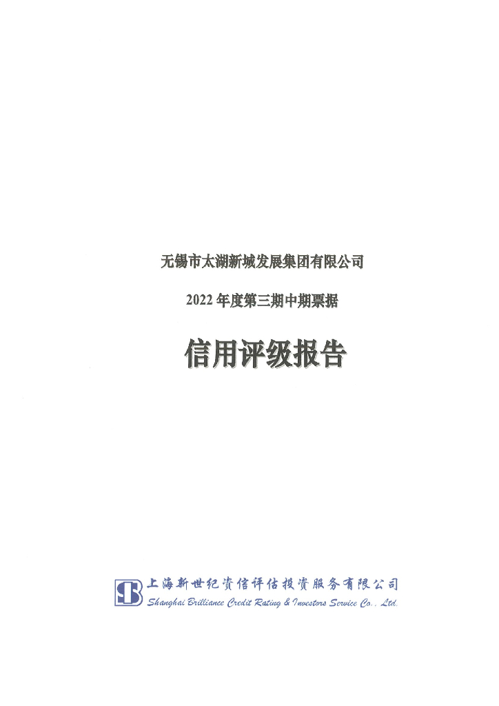 新世纪:无锡市太湖新城发展集团有限公司2022年度第三期中期票据信用评级报告及跟踪评级安排.pdf