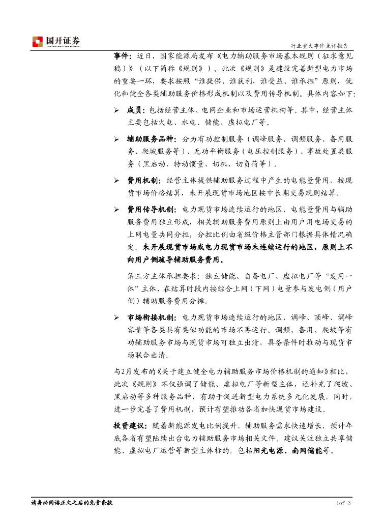 国开证券:电力辅助服务征求意见发布,看好新型主体发展.pdf
