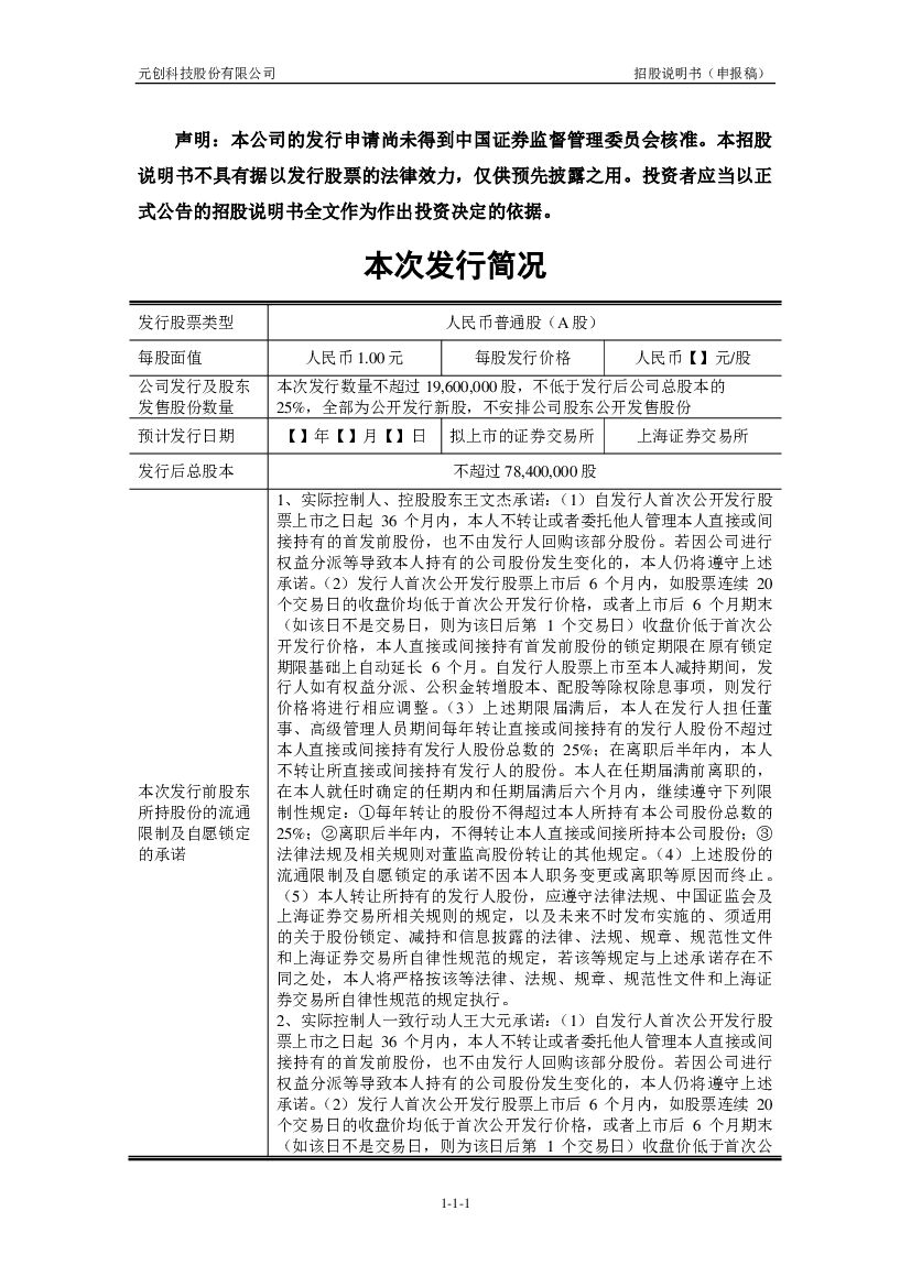 元创股份沪市主板IPO上市招股说明书:拟募资5.35亿元,依赖前五大客户.pdf