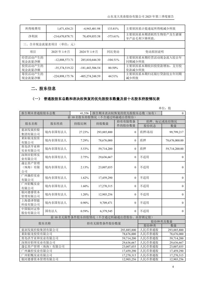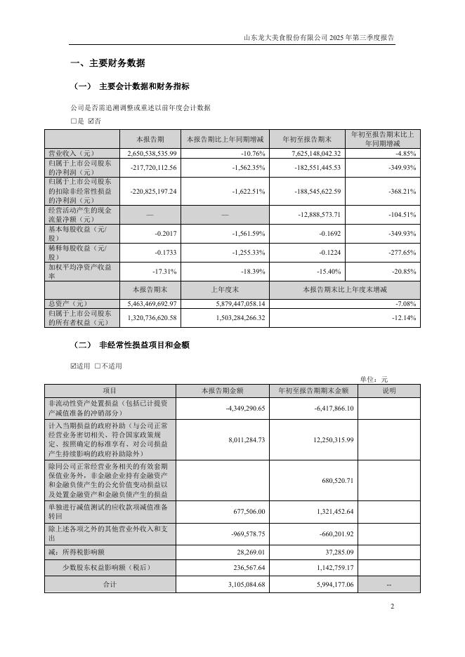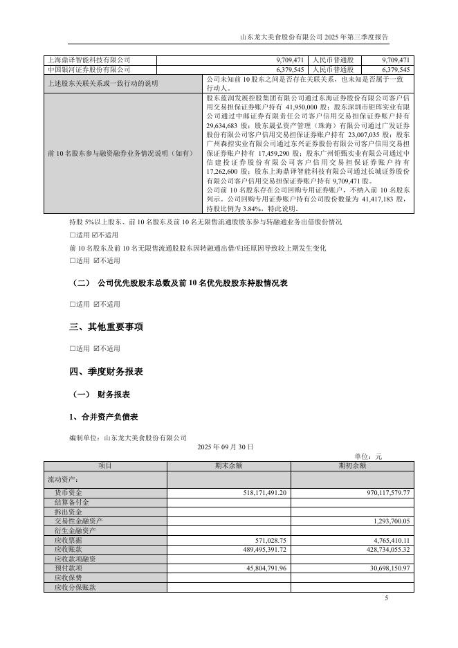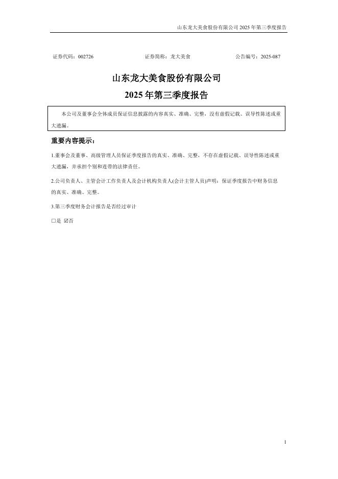 002726-龙大美食:2025年三季度报告.pdf